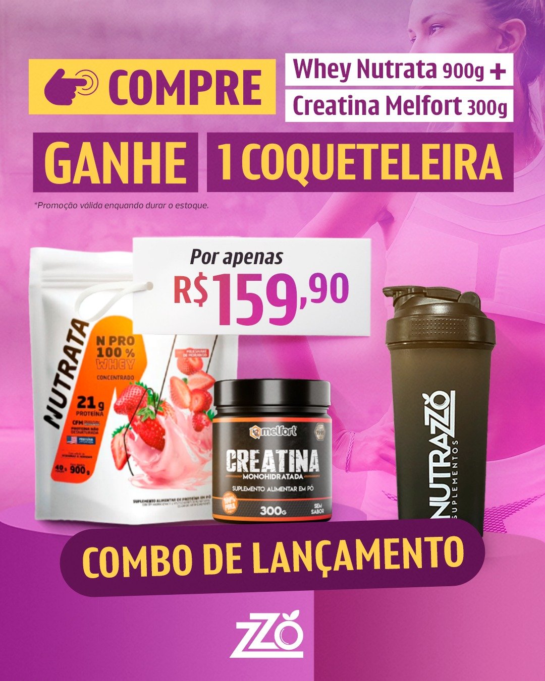 Comprando o combo promocional Whey NPRO 100% Concentrado 900g Nutrata + Creatina Monohidratada 300g Melfort você leva de brinde uma coqueteleira personalizada da nossa marca Nutrazzo.
