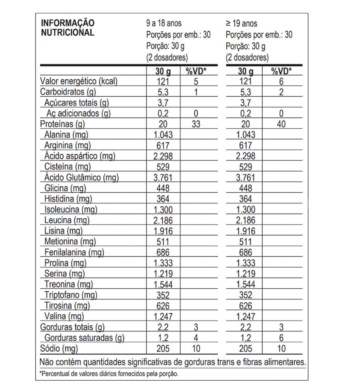 Oferece até 20g de proteína por porção/dose.