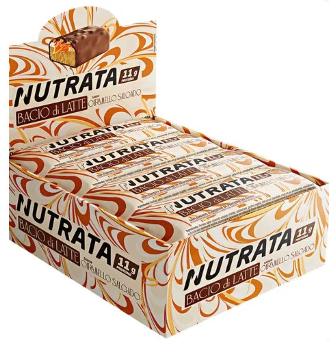 A barra de proteína Nutrata Bacio Di Latte sabor Caramello Salgado combina com a cremosidade do recheio sabor caramelo salgado, proteína e qualidade indiscutível que só a Nutrata oferece.