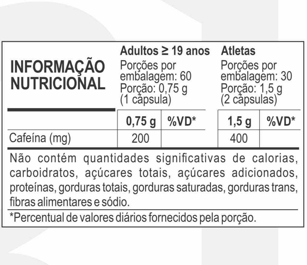 Com alta concentração de cafeína anidra e tecnologia em softgel, proporciona rápida absorção e ação eficaz, estimulando o sistema nervoso central, aumentando o estado de alerta, o foco, a termogênese e a performance esportiva.