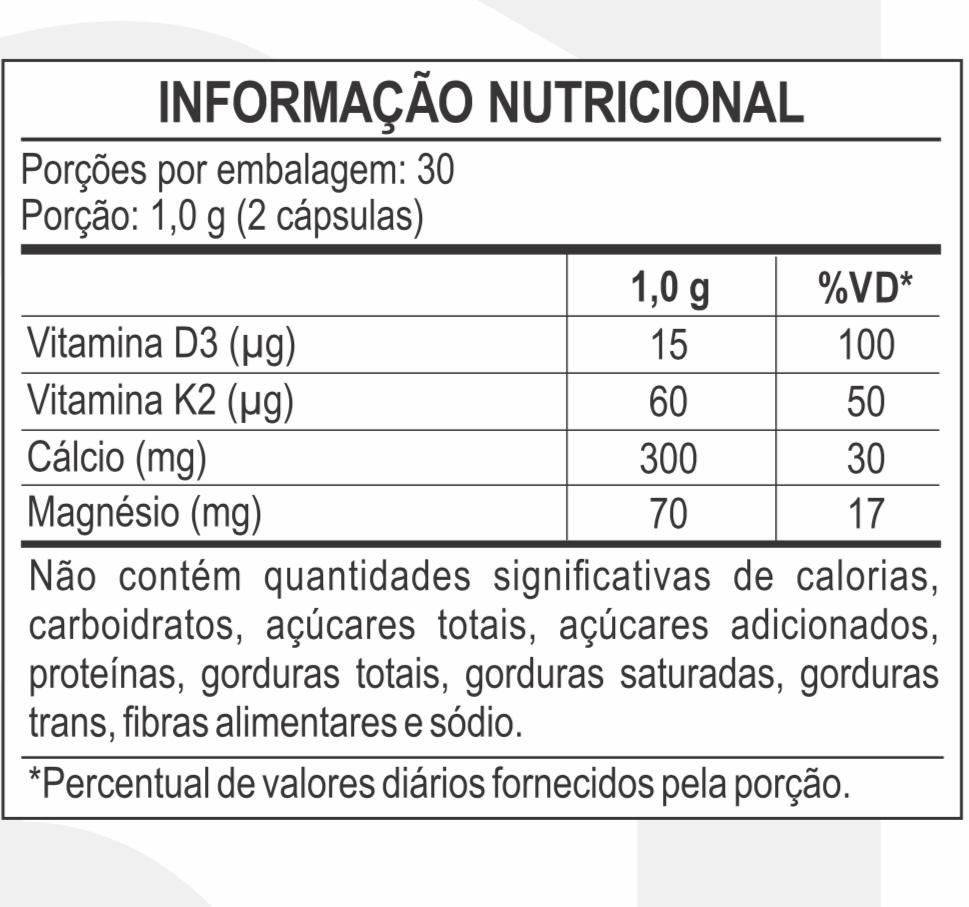 Essa combinação promove fortalecimento ósseo, prevenção de osteoporose, equilíbrio mineral e suporte à saúde cardiovascular. Um suplemento indispensável para adultos, idosos, mulheres na menopausa e pessoas com baixa ingestão de cálcio na dieta.