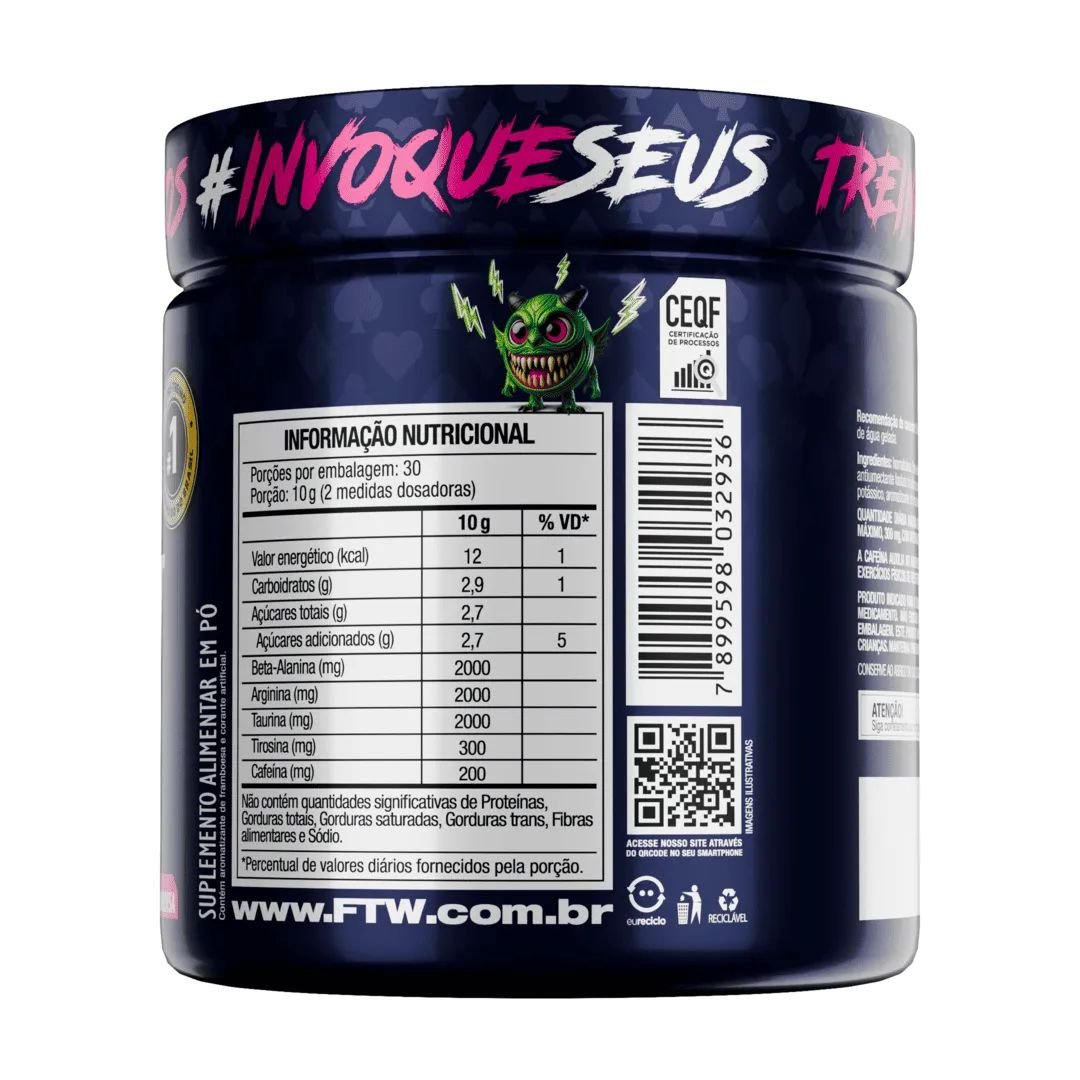 O Diabo Verde Pre-Workout FTW é um suplemento pré-treino formulado para potencializar o desempenho físico e mental durante os treinos. Com uma combinação potente de ingredientes como cafeína, beta-alanina, arginina, taurina e tirosina, este suplemento oferece energia, foco e resistência para treinos mais intensos e eficazes.