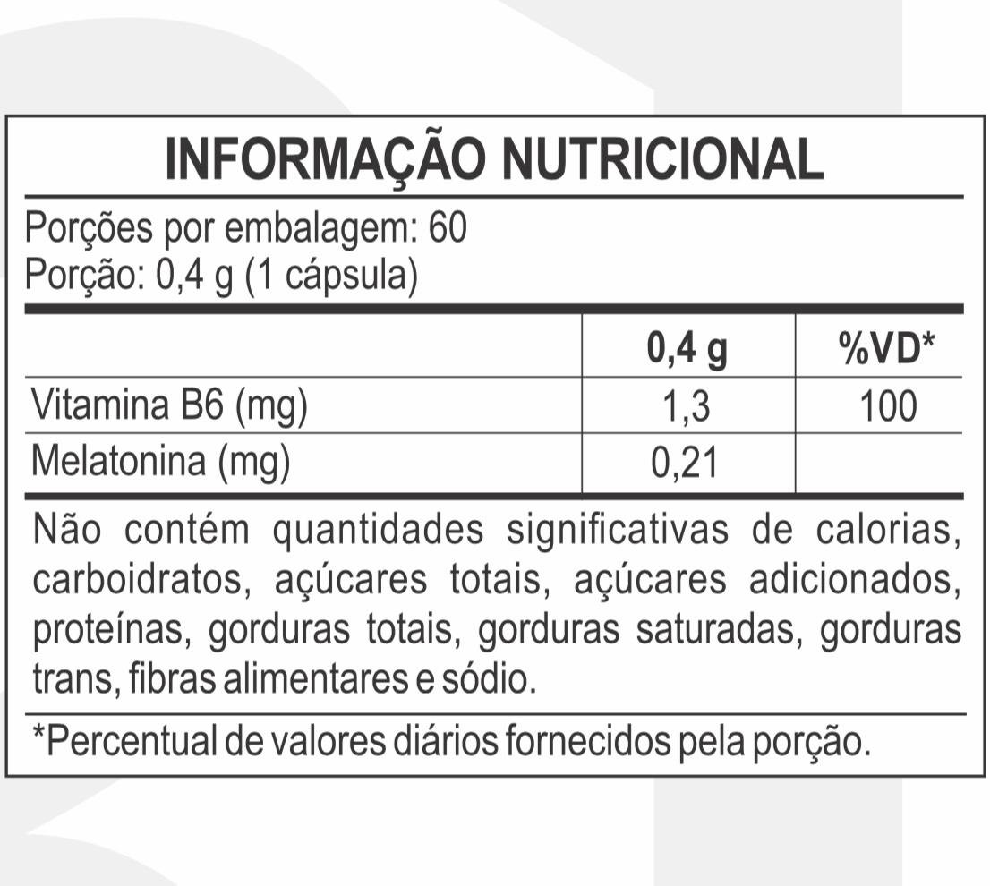 Com a adição da vitamina B6 (cloridrato de piridoxina), essencial para o metabolismo energético e a função neurológica, este suplemento potencializa o equilíbrio do sistema nervoso, colaborando para a melhora da qualidade do descanso noturno.