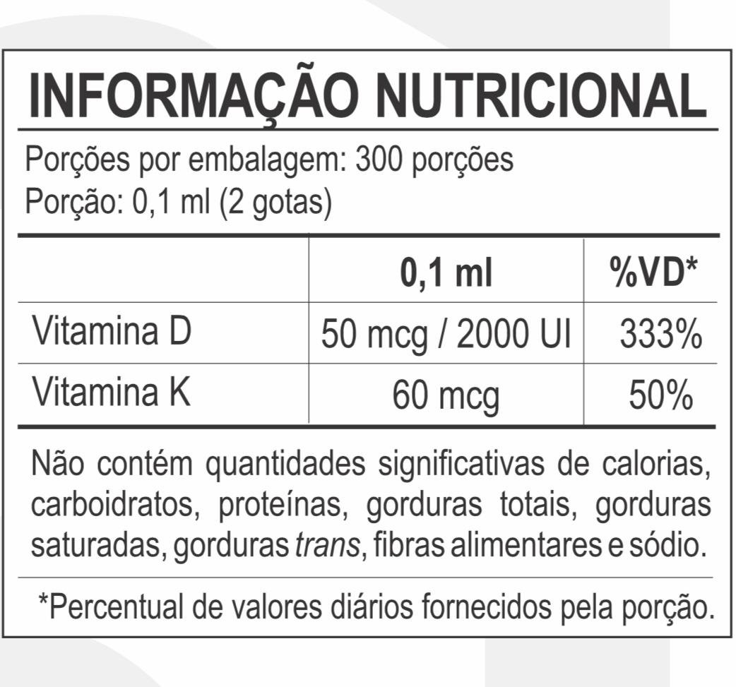 Combinação poderosa de Vitamina D3 com K2 em gotas, ideal para fortalecer ossos, dentes e a saúde cardiovascular.